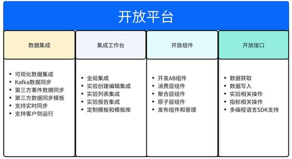 协帮企业将A/B测试深度整合到本人的消息化系统中。还能显著提拔用户的利用体验。火山引擎A/B测试供给了SDK,用户也能够通过这些开放组件搭建本人特有的 A/B 测试平台使用?