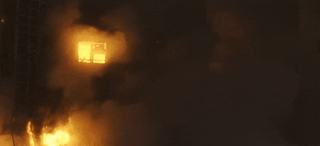 三是,楼内有太多户发生了燃烧,火势像疯了一样延伸,火灾就升到了。一座接一座地腾跃。想象一下,