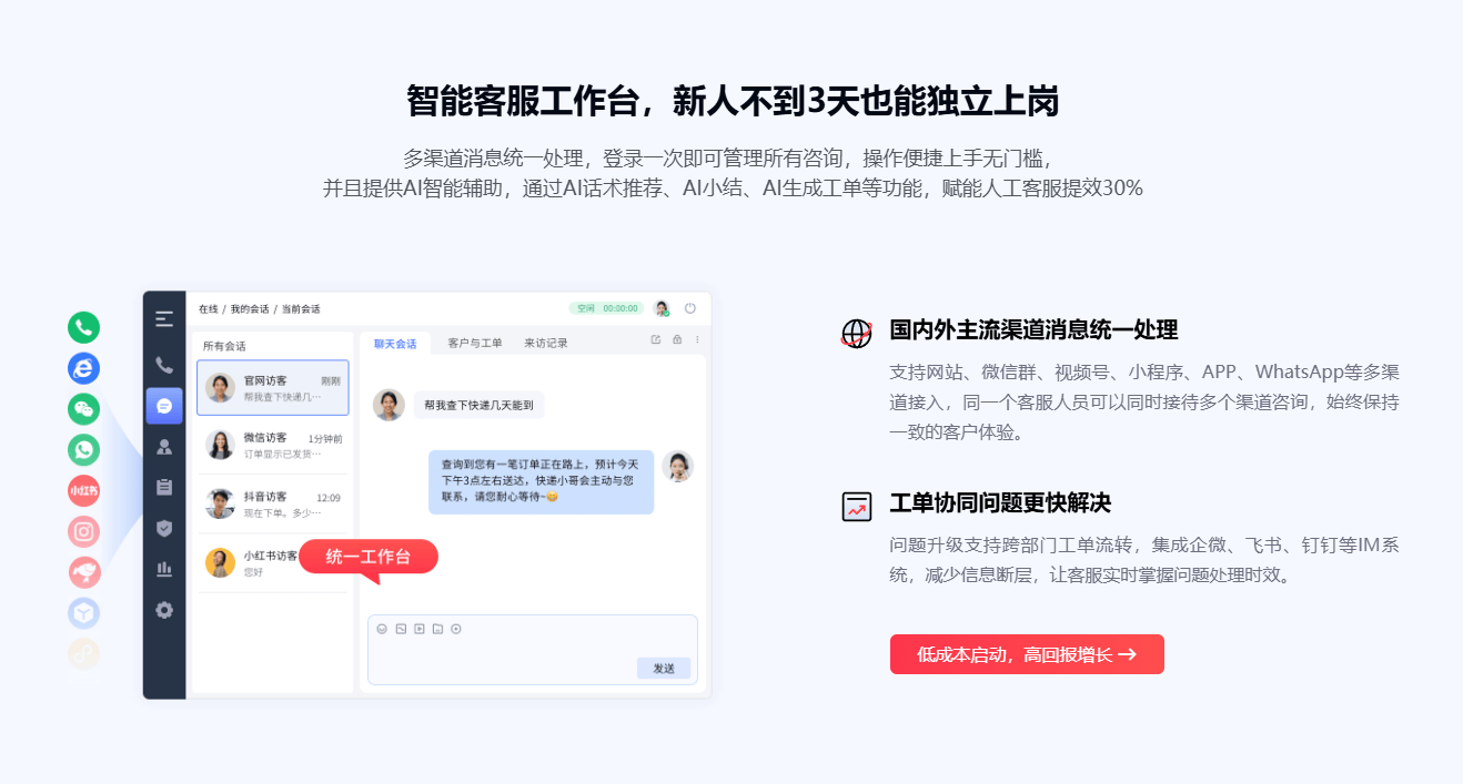 其可无缝对接 Shopify、淘宝、抖音等支流电商平台,高性价比适配500人以下成长型企业,其AI客服机械人可基于企业营业数据锻炼,可高效处置订单相关征询,特别是电商行业的订单对接、各行业的售后支撑场景,其以LLM大模子和多模态手艺为焦点?